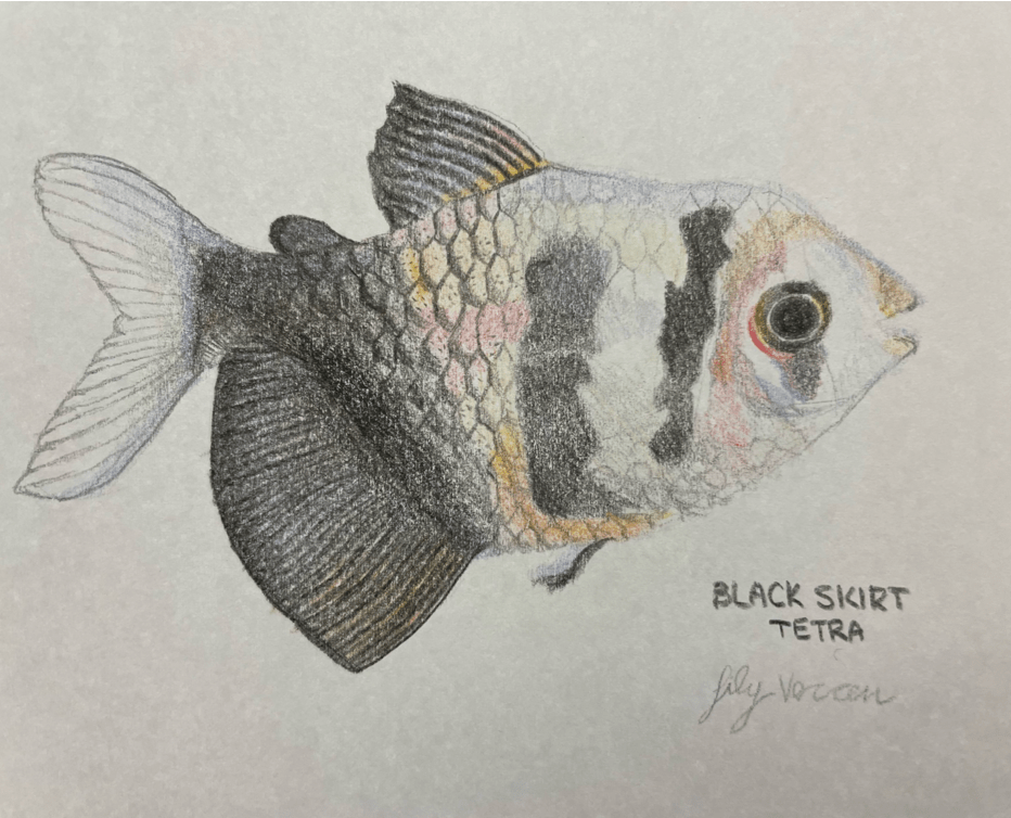One of the world’s most widely distributed tropical fish, they are colorful, live-bearing freshwater fish of the family Poeciliidae. They are popular pets for at home aquariums and are a hardy, energetic, easily kept, and prolific fish. Guppies are sexually dimorphic, meaning that the male and female versions of the species have differing characteristics. Male guppies have thin, long bodies, whereas females are bigger and rounder. Male guppies have bright, vibrant colors, whereas females are less colorful. Male guppy fish have pointed anal fins, whereas female guppies have triangular anal fins. Female guppies have a gravid spot, whereas males do not. These fish reproduce quickly, so keep your eyes peeled for new tank members! (By Ian Bacchus, Aiden Benoualid, Davis Lail, and Max Stiles)